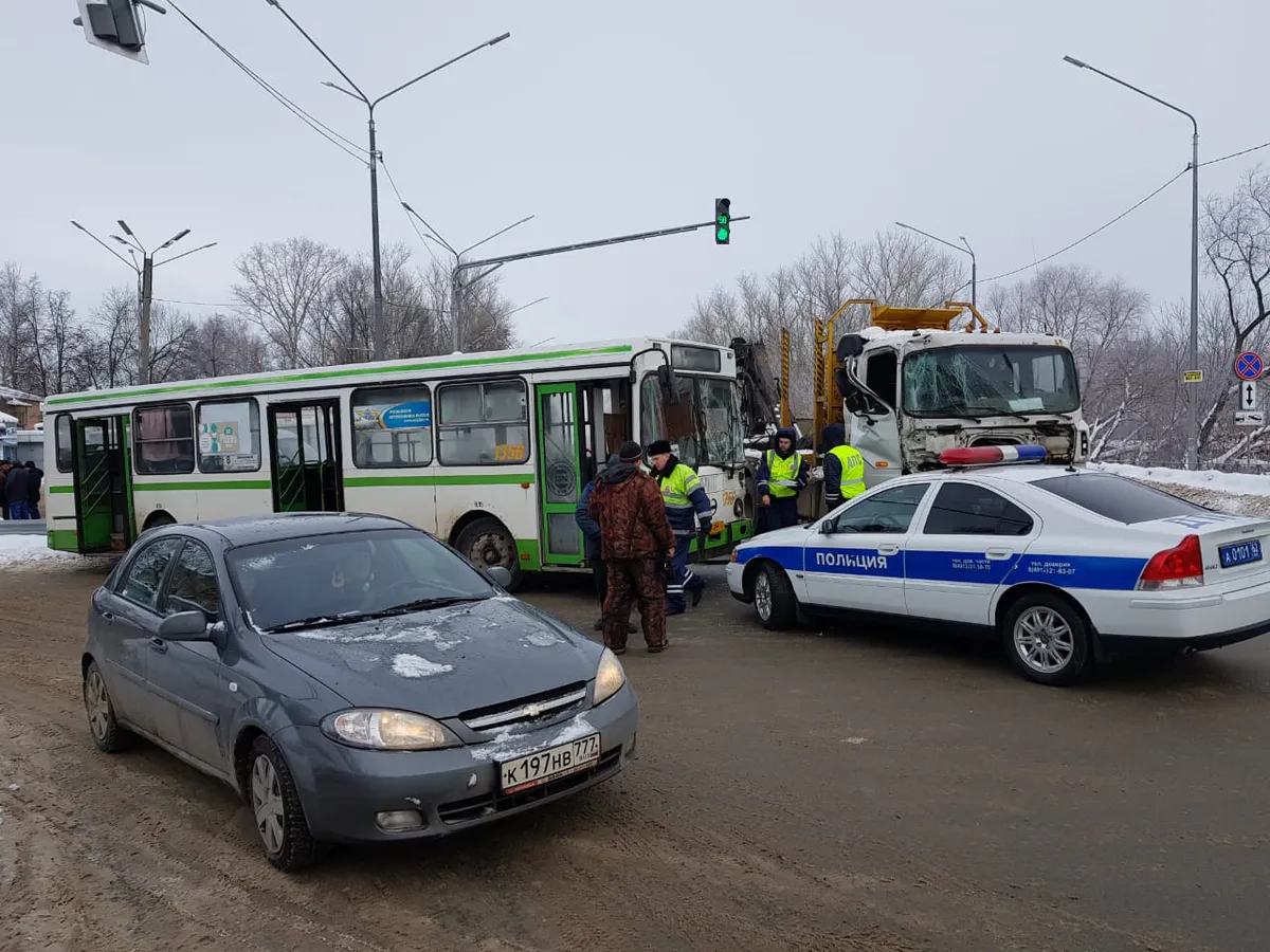 В Рязани пассажирский автобус врезался в грузовик, есть пострадавшие