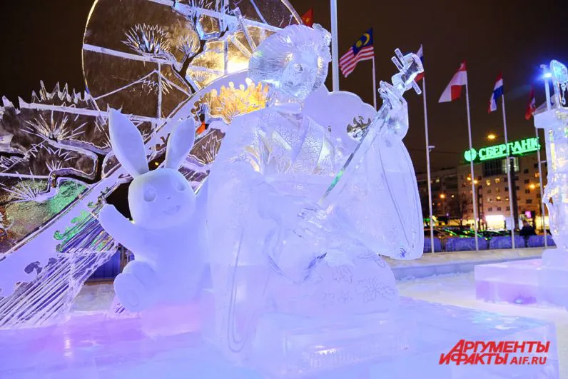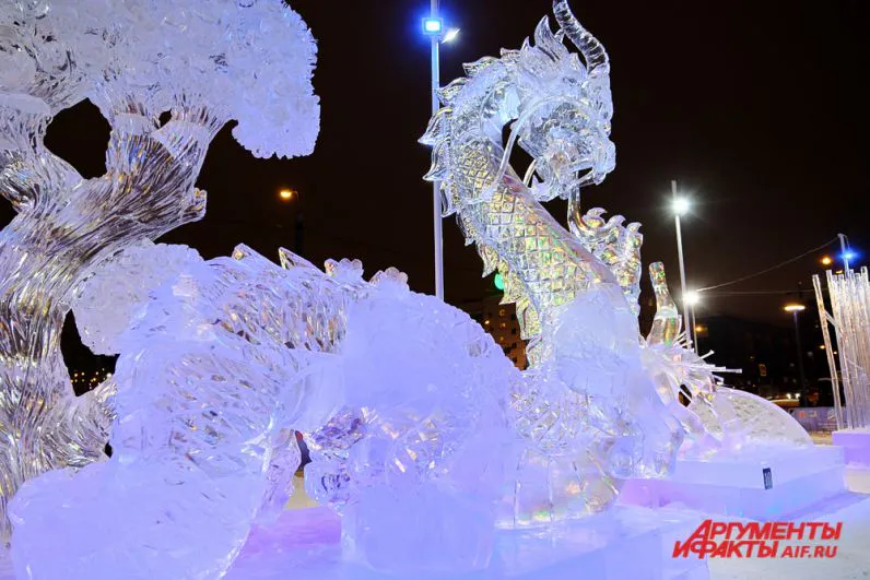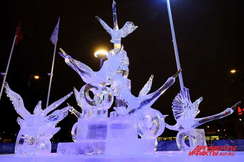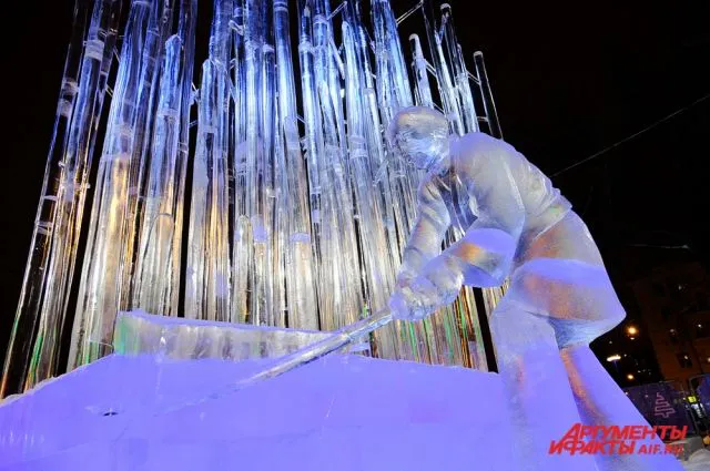 В Перми определились победители VI Кубка России по ледовой скульптуре "Зимний вернисаж"-2019. Первое место заняли рязанцы Юрий и Владимир Мистрюковы со своей работой "Один взмах меча".