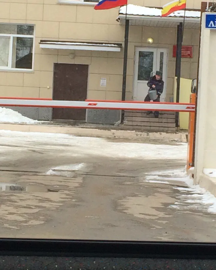 В Интернете появилась фотография, на которой видно, как сотрудник ГИБДД готовится опрокинуть ведро воды на ступеньки отделения, перед которыми, к слову, уже собралась лужа. Автор снимка Олеся Тыква предположила, что гаишники не хотят, чтобы их доставали визитами граждане, вот и устраивают полосу препятствий. Progorod62 сегодня связался с тем самым отдельным батальоном ДПС ГИБДД в п. Соколовка и попытался узнать, для чего в минусовую температуру поливать ступеньки водой. Дежурный явно был не готов отвечать на подобные вопросы: