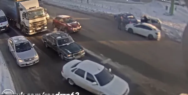 На кадрах видео можно заметить, что все автомобили при повороте на перекресток заносит вправо. Есть вероятность, что ДТП произошло из-за сколькой дорог. На данный момент официальной информации о случившемся не поступало.