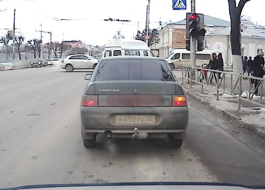 «Стоял, терпел... Правда не в ряду для поворота, а для движения прямо. И плевать этому уроду, что красный и плевать, что создаёт помеху автомобилю движущемуся слева.