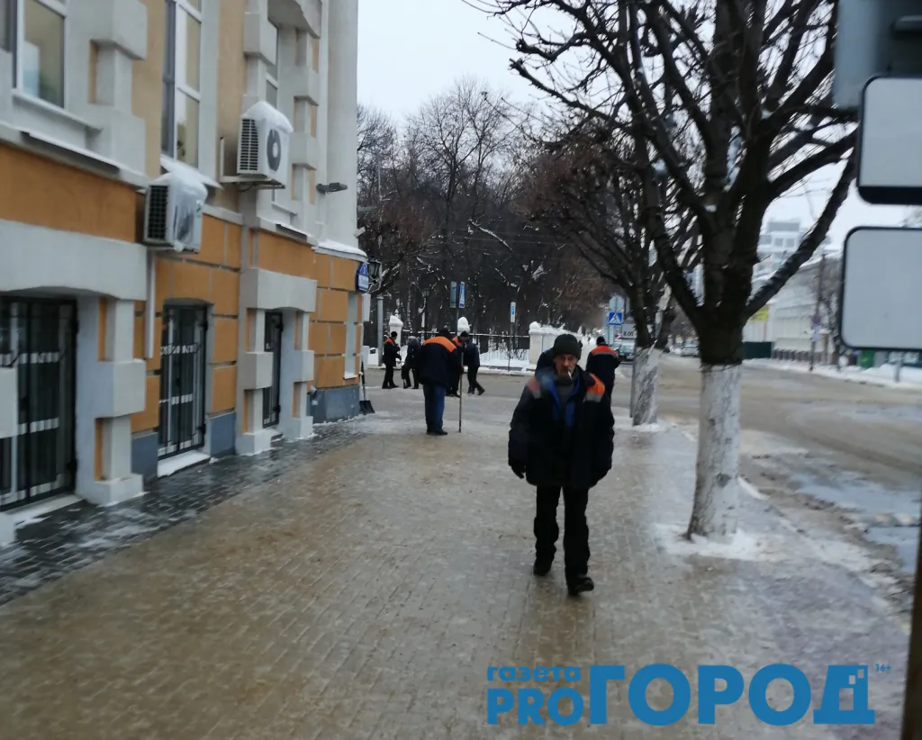Спасение городской администрации из ледяного плена: почти десять дворников долбят лед