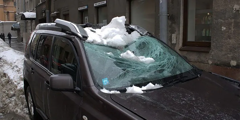 С приходом потепления, свисающие с крыши глыбы снега и льда представляют серьёзную опасность как для припаркованных автомобилей, так и для пешеходов. К сожалению, даже платная парковка не является гарантом того, что на вашу машину не прилетит глыба льда. Ведь, операторы платных парковок не несут ответственности за сохранность вашего автомобиля. Однако, получить компенсацию за разбитый автомобиль можно!