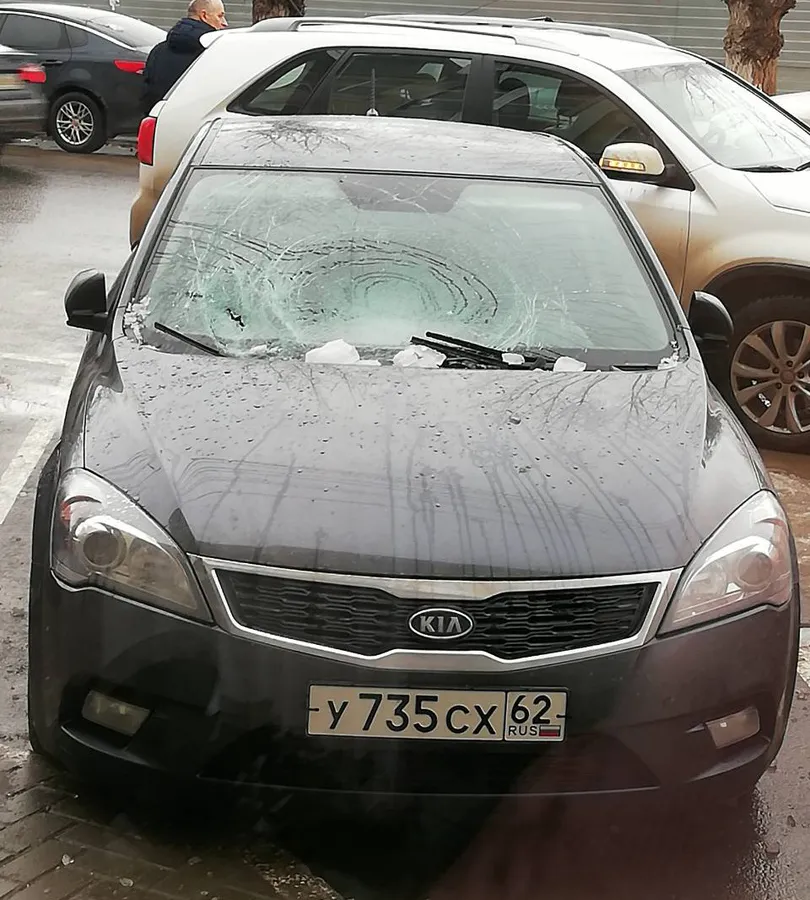 5 февраля, на платной парковке на улице Радищева упавшая с крыши глыба льда повредила автомобиль. Соответствующая фотография появилась в группе «Подслушано у водителей Рязани».