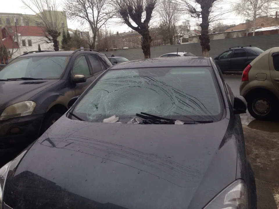 Опасная зона: в Рязани ледяные глыбы уничтожают автомобили