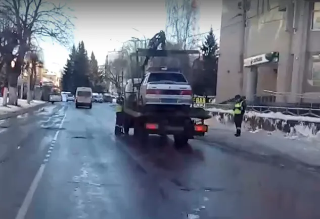 В Рязани полицейский автомобиль погрузили на эвакуатор. Видео