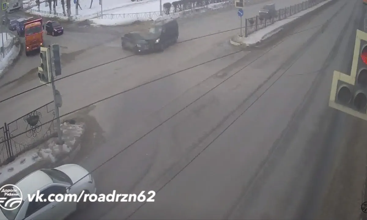 Во вторник днём, на Московском шоссе столкнулись микроавтобус и легковушка, - видеоролик момента столкновения появился на YouTube-канале «Дороги Рязани».