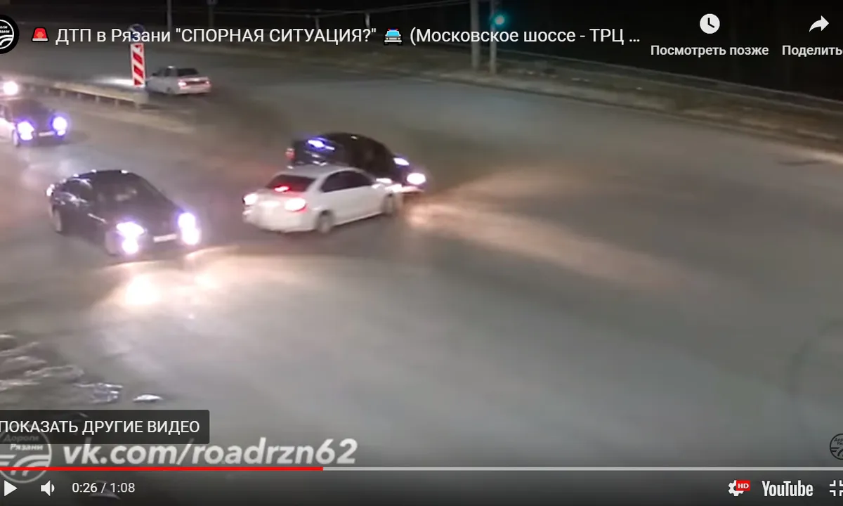 В среду вечером, 20 февраля, на Московском шоссе произошло казалось бы спорное ДТП: белый VW Polo врезался в ВАЗ-2115, - видеоролик момента ДТП появился на YouTube-канале «Дороги Рязани». Вероятно, водитель иномарки пытался проскочить на жёлтый сигнал светофора и вместо того, чтобы тормозить он решил ускориться. В результате чего и произошла авария.