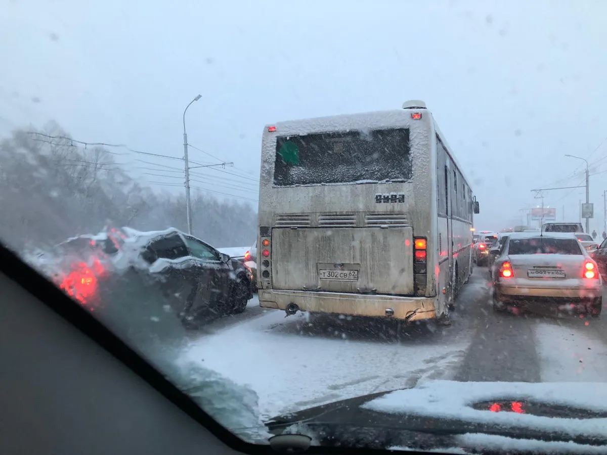 Рязань накрыл снежный буран: пробки, нулевая видимость и страдание