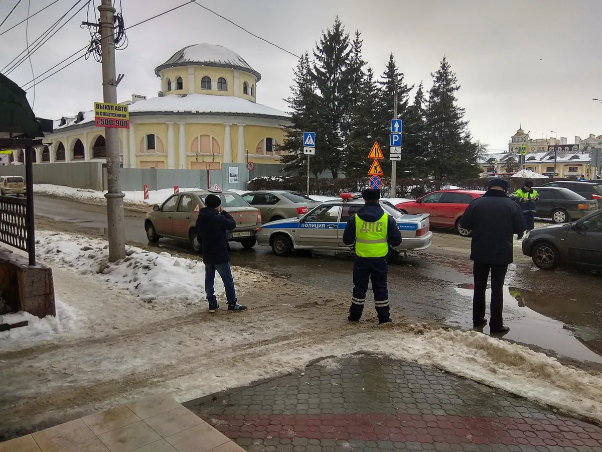 В центре Рязани столкнулись полицейская машина и "учебный" автомобиль. Фото курьезной аварии Pro Городу прислал читатель: