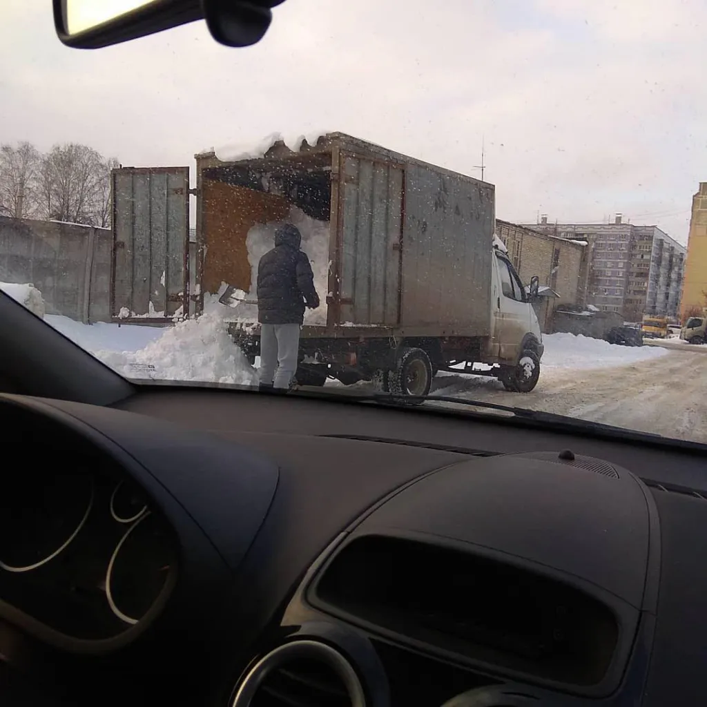 Рязанец стал выгружать снег из машины посреди дороги