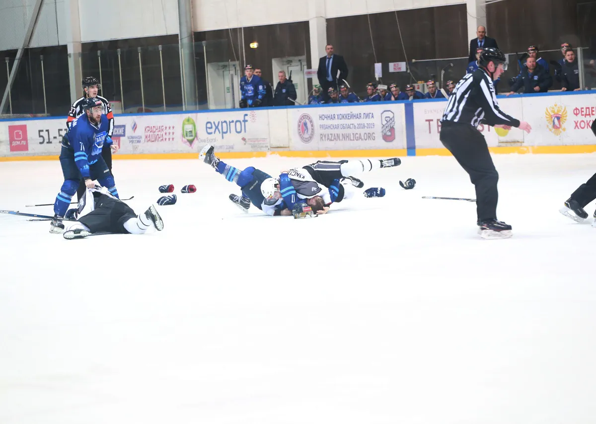 Рязанские хоккеисты получили почти 200 минут штрафного времени из-за массовой драки на матче