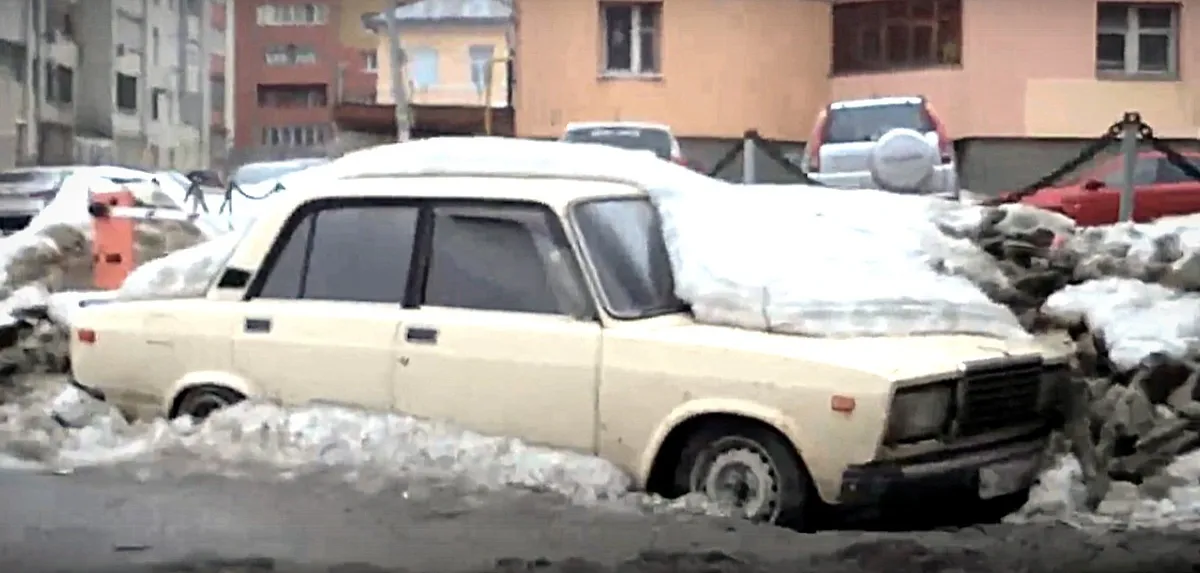 «Кто-то «семёрку» потерял»: брошенная машина вмёрзла в лёд
