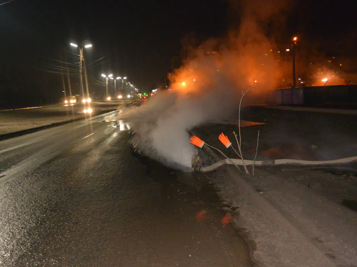 Водоканал откачивал горячую воду из затопленного коллектора, прямо на дорогу, образуя при этом «паровую завесу».