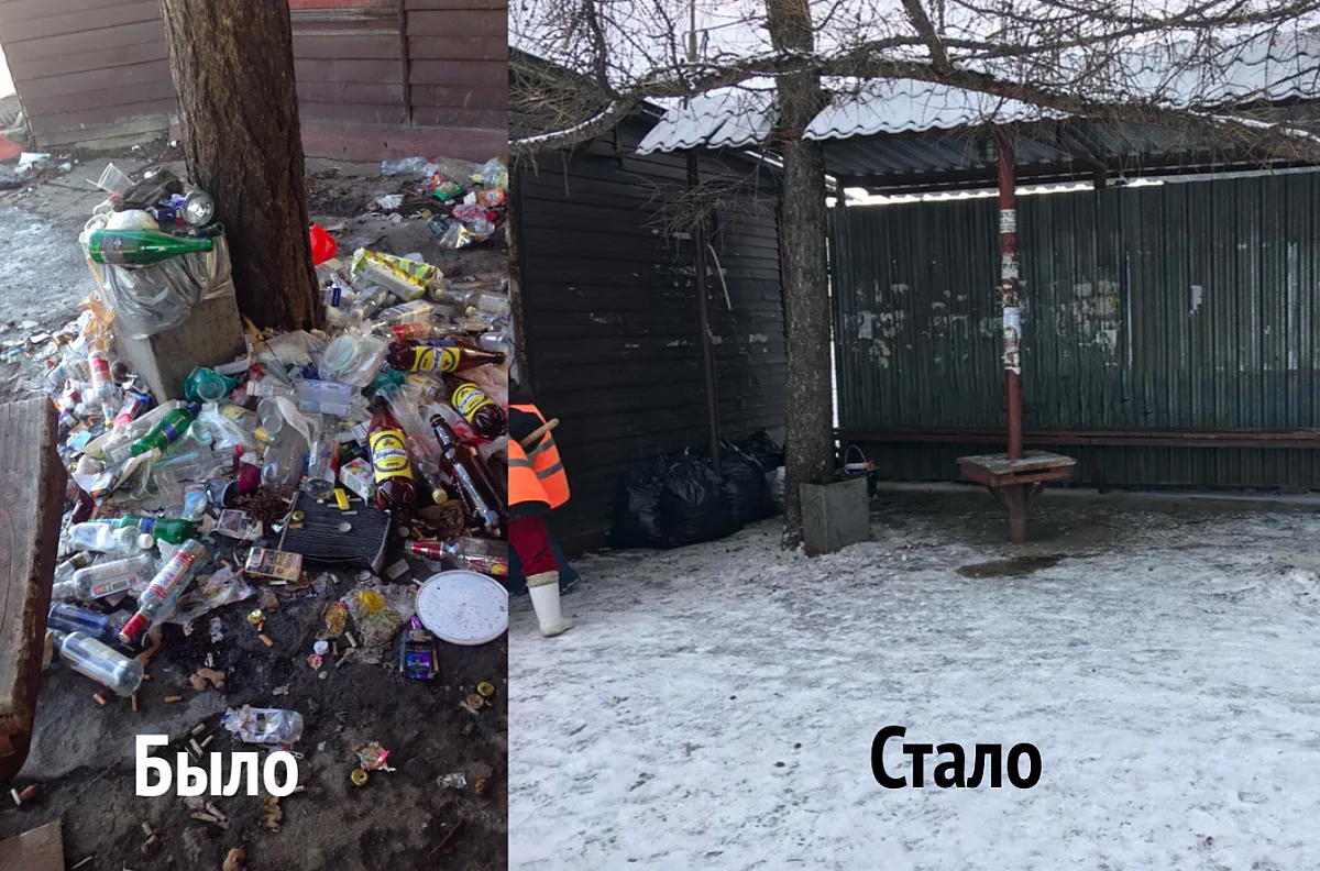 Было - стало: на остановке "Комбайновый завод" убрали помойку