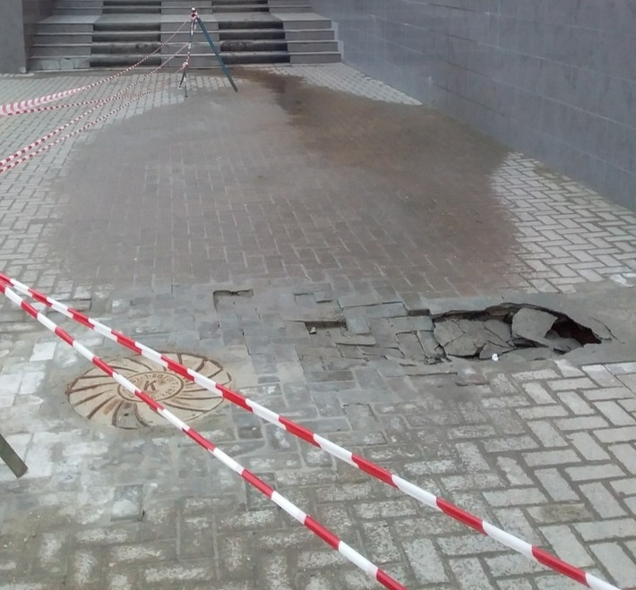 - На центральной улце образовался провал. Рядом с ним плитка тоже готова провалиться в любой момент, - написал автор поста.