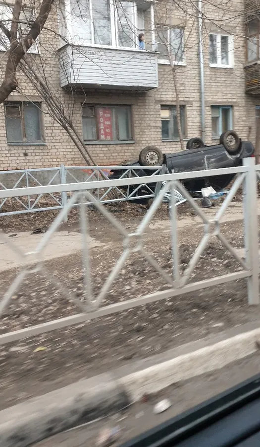 ДТП произошло на улице Весенней рядом с домом. Автомобиль пробил дорожное ограждение и перевернулся.