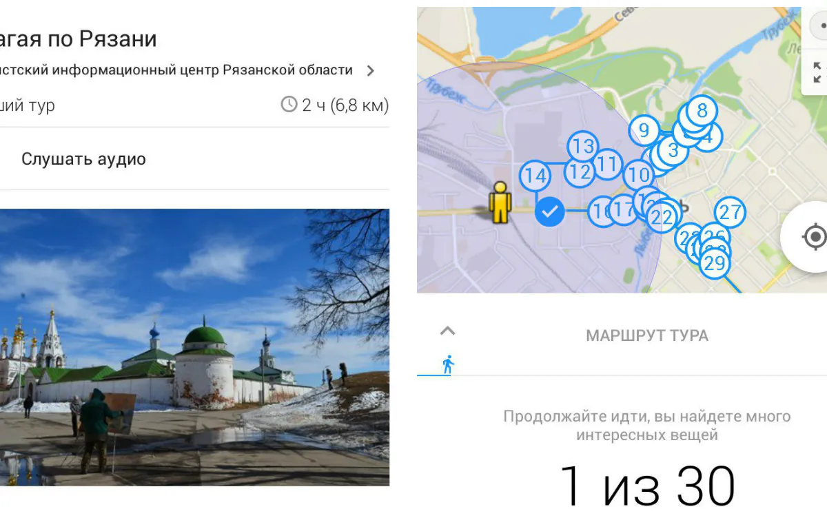 Мной был протестирован новый аудиогид по городу "Шагая по Рязани"