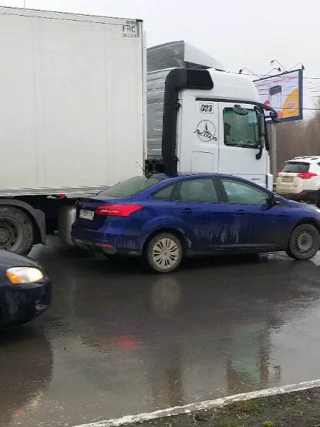 Осторожно, пробка! У ТРЦ Премьер не поделили дорогу иномарка и грузовик