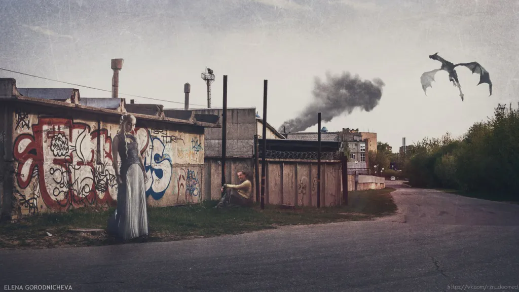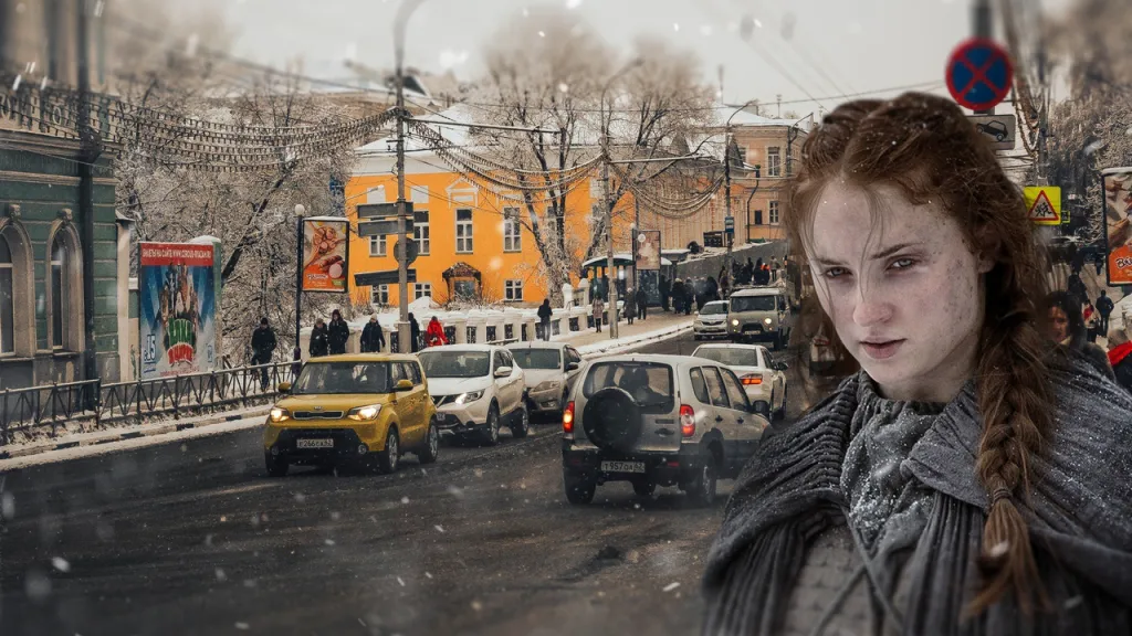 Арья Старк в подземном переходе и Джон Сноу с пакетом из пятёрочки: как выглядят главные персонажи «Игры Престолов» на фоне рязанских реалий
