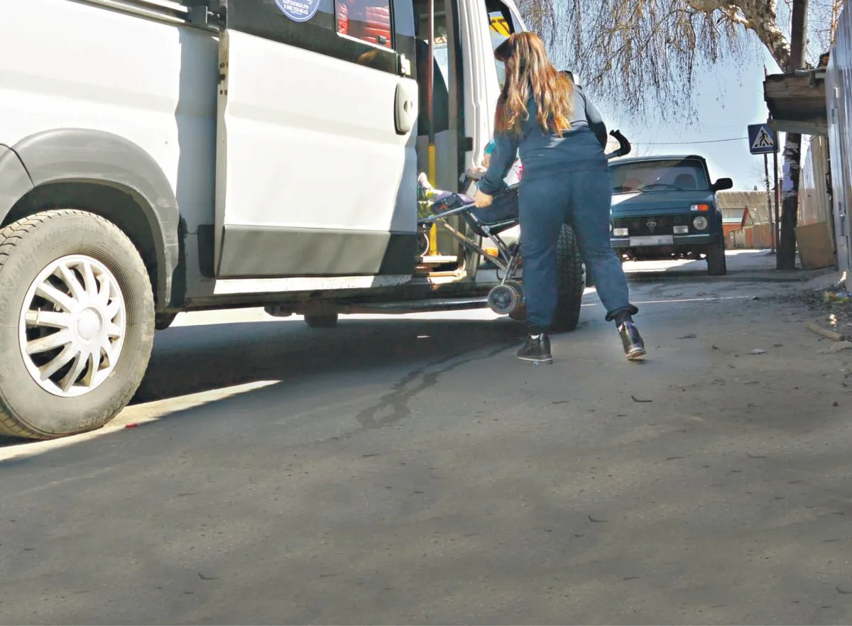 Сначала мимо нас проехали две полупустые маршрутки. Водители даже не притормозили. Спустя 15 минут показался красный автобус. К счастью, водитель ПАЗа остановился и впустил молодую маму. Выйдя и автобуса и преодолевая грязь и ухабы, мы добрались до дома девушки. По пути Нелли снова и снова говорила о том, что нормальных, больших автобусов на городских линиях очень мало. А полноценно передвигаться по городу можно только на них.