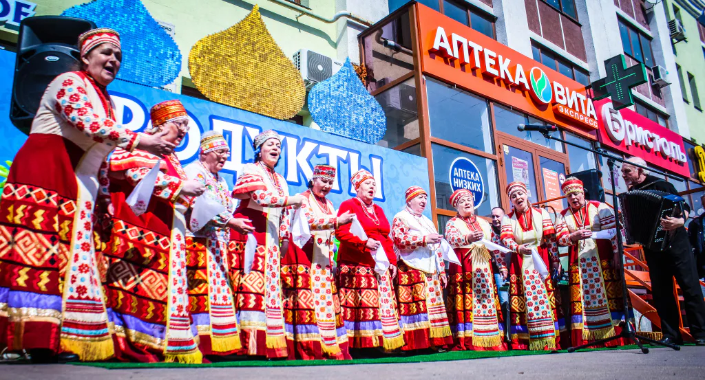 На протяжении всей торжественной части, гостей праздника развлекали скоморохи. А в заключение, хор Полянского сельского Дома культуры исполнил для горожан несколько русских народных песен.