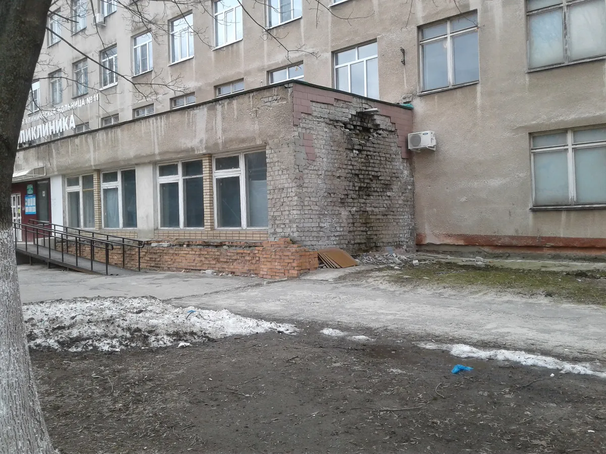 Вот посмотрите какой «убитый» вход в 11-ю поликлинику. Его не ремонтировали лет 10 уж точно. Интересно, в этом году он «сложится» из-за ветра и дождя или нет?, - в рубрику «Народный контроль» жалуется Ганнадий Прус.