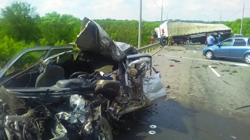 Автомобиль ВАЗ-21120 выехал на встречную полосу и столкнулся с фурой с полуприцепом. Затем легковушку отбросило на грузовой автомобиль «Рено» с полуприцепом. После этого фура столкнулась с автомобилем «Фольксваген». От нескольких страшных ударов ВАЗ превратился в груду металла. Водитель с супругой и их семимесячный сын погибли на месте.