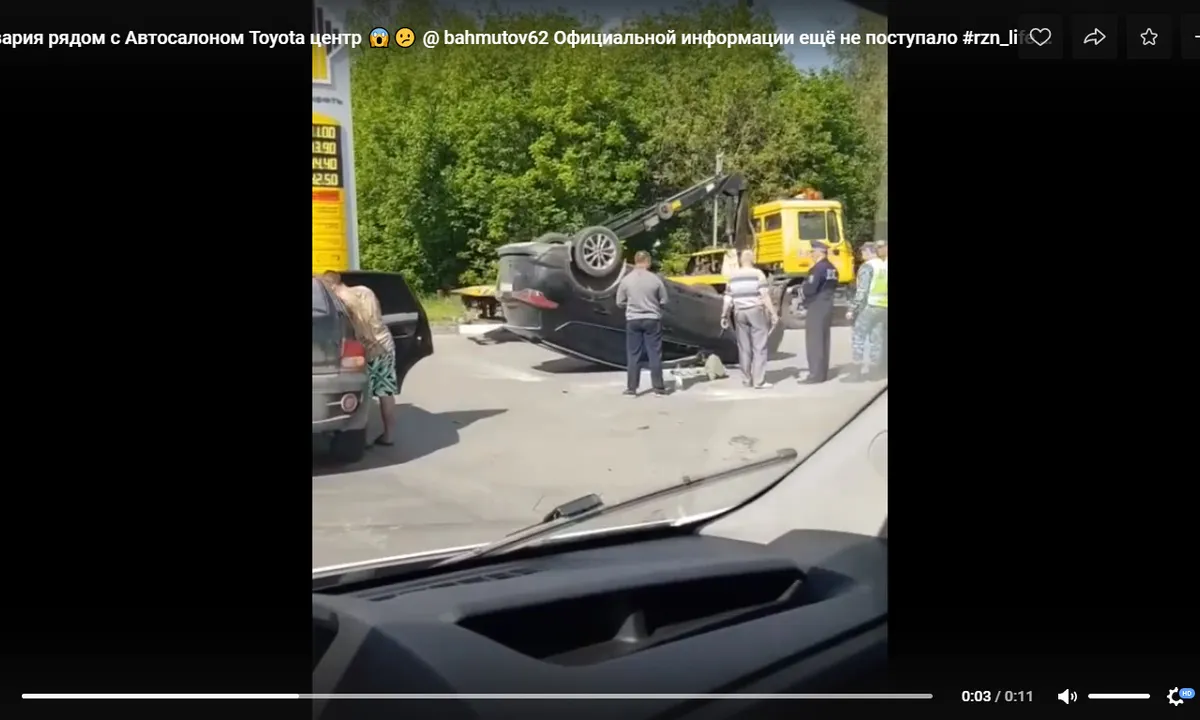 На Куйбышевском шоссе перевернулся кросс-овер Toyota Rav-4, - видеоролик с места ДТП был опубликован в группе RZN LIFE во ВКонтакте. На кадрах видно, что перевёрнутый автомобиль лежит неподалёку от «Тойота-Центр Рязань». Официальной информации относительно инцидента пока что нет.