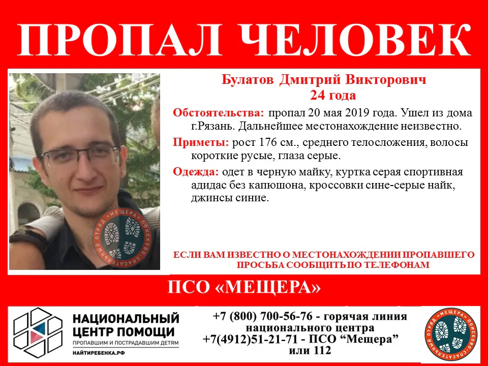 В Рязани пропал 24-летний Дмитрий Булатов. Об этом сообщили волонтеры поисково-спасательного отряда «Мещера».