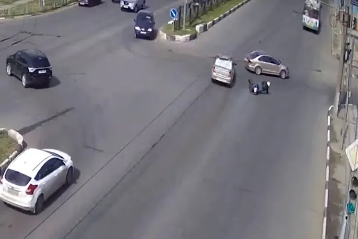 На Московском шоссе мотоцикл врезался в автомобиль. Видео с ДТП появилось в группе «Дороги Рязани».
