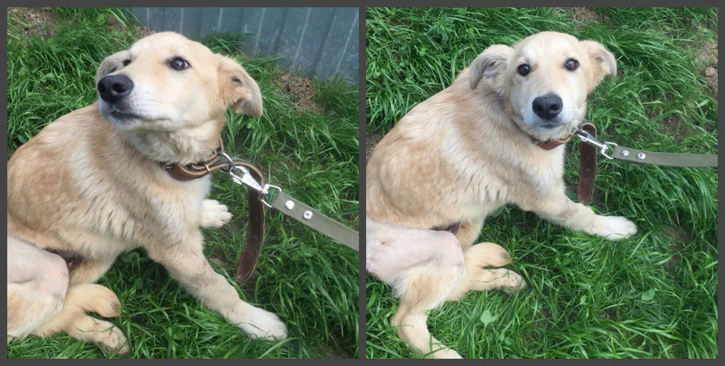 "Посмотрите в мои глаза, полные надежды, что меня заметят мои будущие родители! Меня зовут Малыш, мне около 6 месяцев. Я очень хочу домой. Я очень отзывчив на ласку, хотя раньше и не знал, что это такое. Я умный, добрый пёс и стану вам хорошим и преданным другом!"