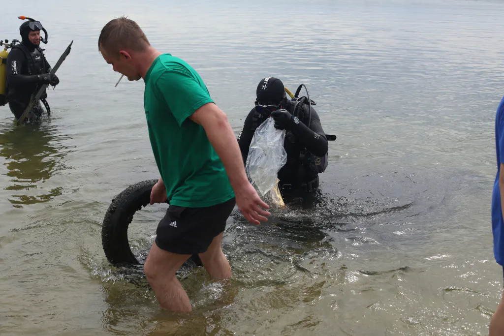 Пока дайверы прочесывали дно карьера, мусор на берегу собирали волонтеры. В этом году на призыв аквалангистов откликнулось около 50 человек. Андрей рассчитывает в следующем году привлечь еще больше участников: очистить сразу весь карьер такими силами просто невозможно. Зато в зоне центрального пляжа теперь купаться безопасно.