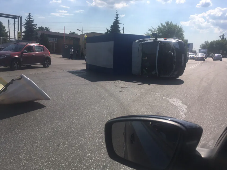 На проезде Яблочкова в результате ДТП перевернулась «Газель»