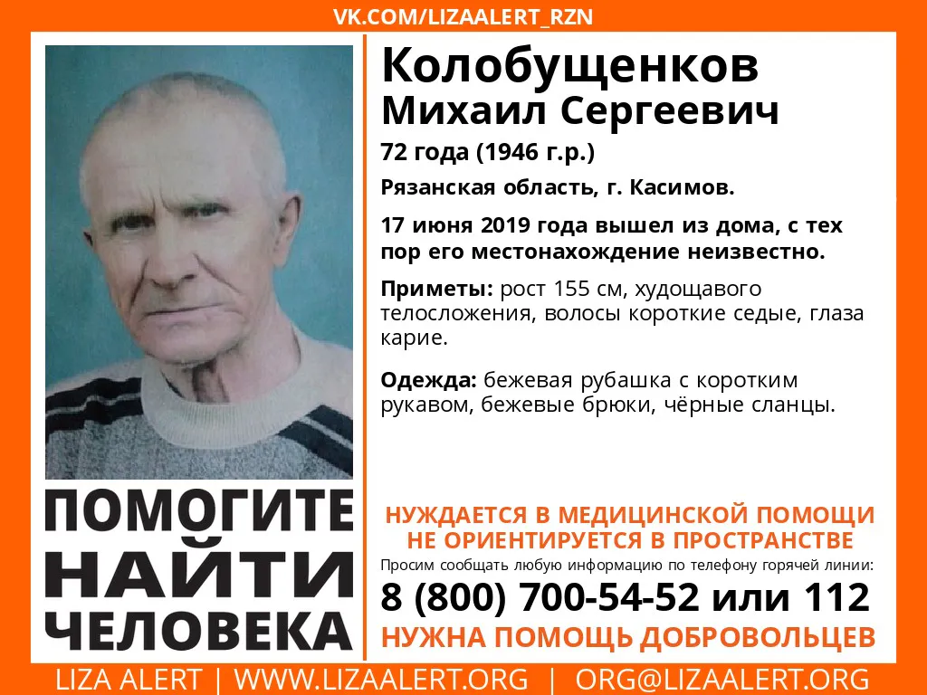 Наверное вы уже привыкли к нашим призывам и просьбам о помощи и возможно даже не вчитываетесь в подробности. Но сейчас хочется просто кричать:"ПОМОГИТЕ НАЙТИ ЧЕЛОВЕКА". Скорее всего именно Вас нам не хватает до заветного - Найден.Жив, о другом мы просто не имеем права думать. Ведь каждый человек должен быть найден, но увы, наших сил уже не хватает. Вся надежда на Вас, Вы очень нужны завтра на поиске.