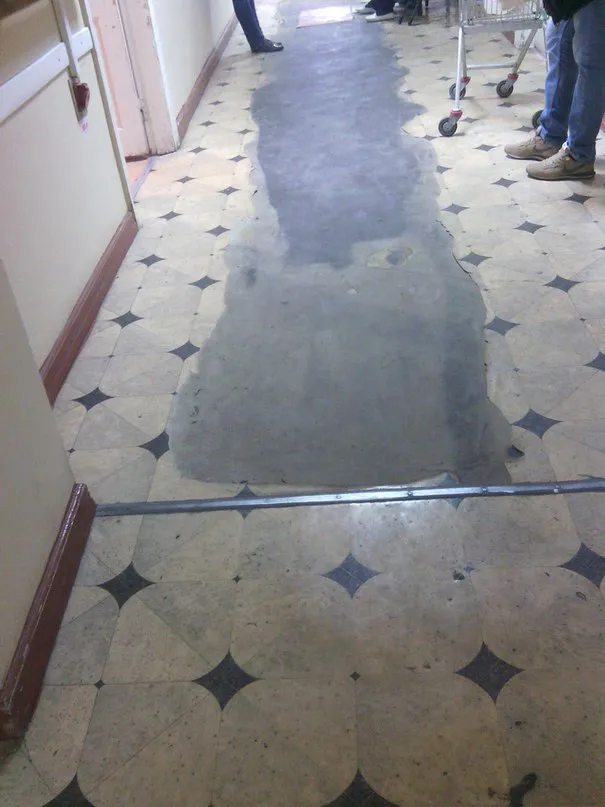 - Я ждала подругу в ортопедическом отделении ОКБ на пятом этаже, ее оперировали и засняла пол с заплатками. Люди там еле передвигаются с костылями, а им ещё на пути линолеум ободранный нужно как-то преодолеть.