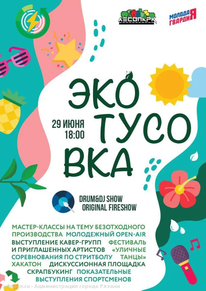 В субботу, 29 июня, в Лесопарке пройдёт экологический фестиваль "ЭкоТусовка". На open air "ЭкоТусовка" рязанцев ждёт экологический квест "Чистые игры". А также дискуссионные площадки для молодежи по обсуждению экологических вопросов региона, работа площадок по проведению мастер-классов. Организаторы праздника подготовили ошбширную спортивную и развлекательную программы.