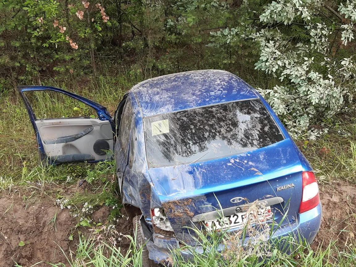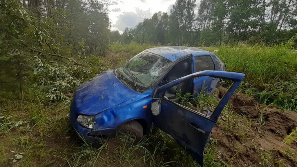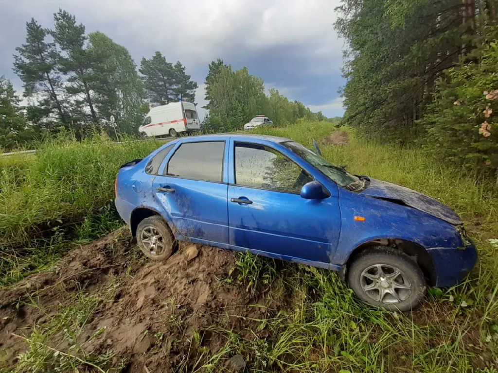 ДТП случилось 9 июля в 17:55 возле деревни Кобылинка. Водитель машины не справилась с управлением на скользкой дороге и превысила скоростной режим, отчего автомобиль вылетел с трассы. Водитель и 65-летняя пассажирка получили телесные травмы.