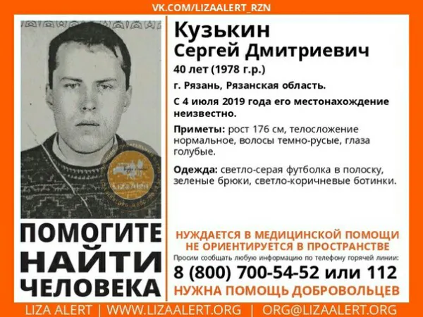 В Рязани пропал 40-летний Сергей Кузькин. Об этом сообщают волонтёры ПСО "Лиза Алерт".