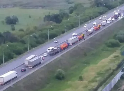 Если верить информации сервиса Яндекс.Пробки, затор растянулся приблизительно на два километра. Средняя скорость потока едва превышает 5 километров в час.