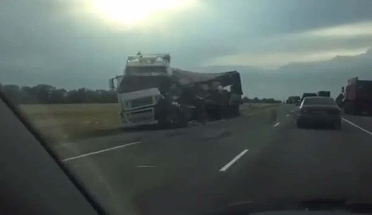 На трассе М5 в Скопинском районе Рязанской области столкнулись два грузовика. Видео с последствиями ДТП появилось в социальных сетях. Судя по кадрам на записи, оба транспортных средства получили серьезные механические повреждения. Кроме того, один из грузовиков вылетел с трассы на обочину.