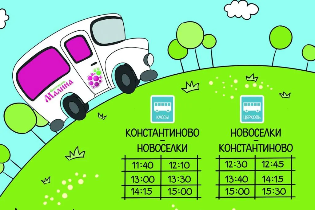 Также на фестиваль можно добратся на машине по трассе М5. Для этого нужно ехать в сторону Москвы, повернуть на Рыбное и село Константиново, затем поворот на село Новоселки. Организаторы напоминают, что во время праздника будет организован бесплатный трансфер в село Константиново: там будет располагаться одна из фестивальных площадок и пройдет игра "Квестомалина".