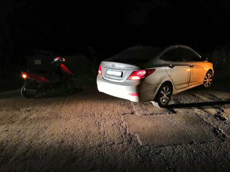 По предварительной информации, 19-летний местный житель без водительских прав ехал на скутере «Страда Джасс» без госзнака. Он не выбрал безопасную дистанцию и врезался в «Хенде Солярис» под управлением 22-летнего рязанца.В результате ДТП никто не пострадал. Автоинспекторы выяснили, что водитель скутера был пьян. Алкотест показал 0,861 промилле на литр выдыхаемого воздуха.За нарушение правил дорожного движения скутерист будет привлечен к административной ответственности.