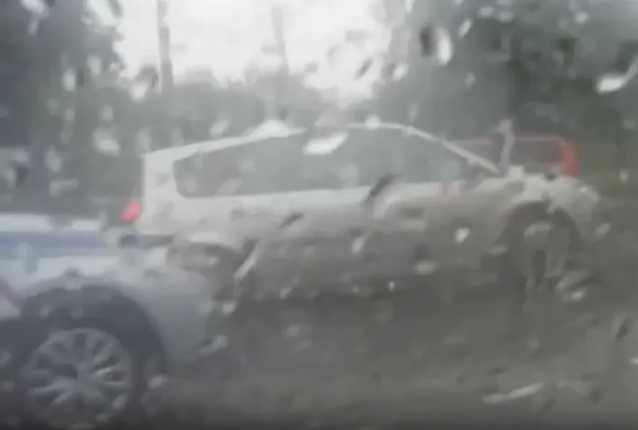 По словам очевидца, одна из машин - Рено - получила механические повреждения. Маршрутки также сильно пострадали. По дороге разбросало обломки. На месте работают сотрудники ГИБДД.