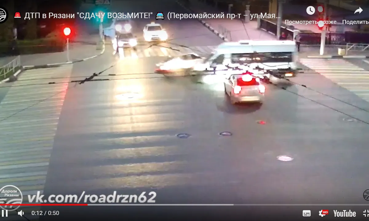 Воскресенье вечером, водитель маршрутки проехал на красный свет и врезался в ВАЗ-21099. ДТП произошло на площади Ленина, 21 июля. Легковушка выехала на перекрёсток со стороны улицы Маяковского на зелёный сигнал светофора. Микроавтобус вылетел на перекрёсток на красный свет. От удара, ВАЗ-21099 развернуло. К счастью, никто не пострадал.