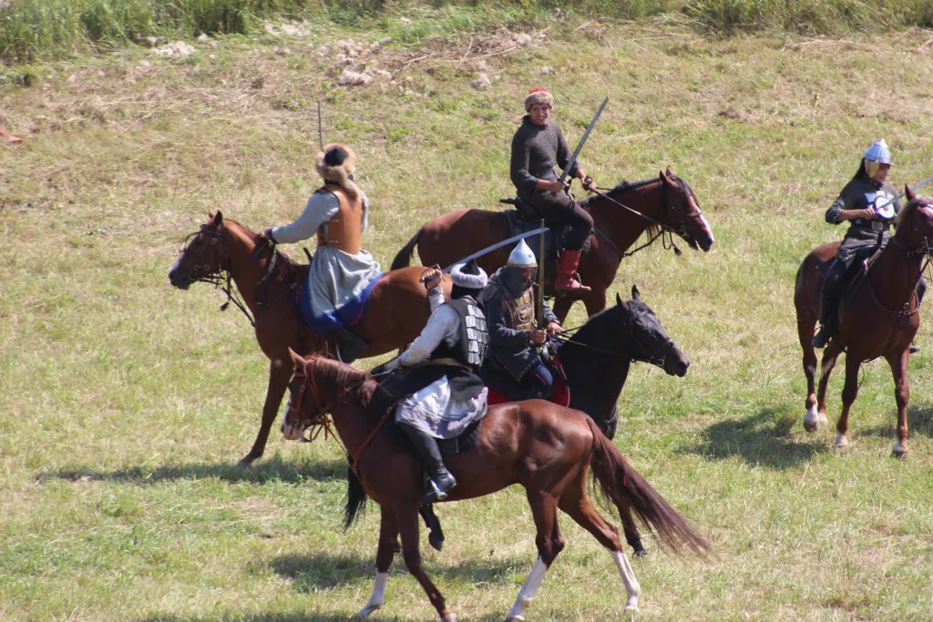 12:30. Начало театрализированного представления, реконструкция Вожской битвы. После этого - конное дефиле и состязания участников исторических клубов.