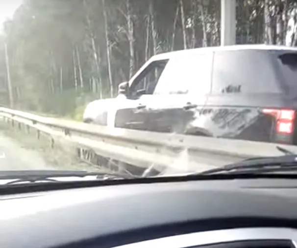 Карма: обочечник застрял между отбойником и столбом. Видео