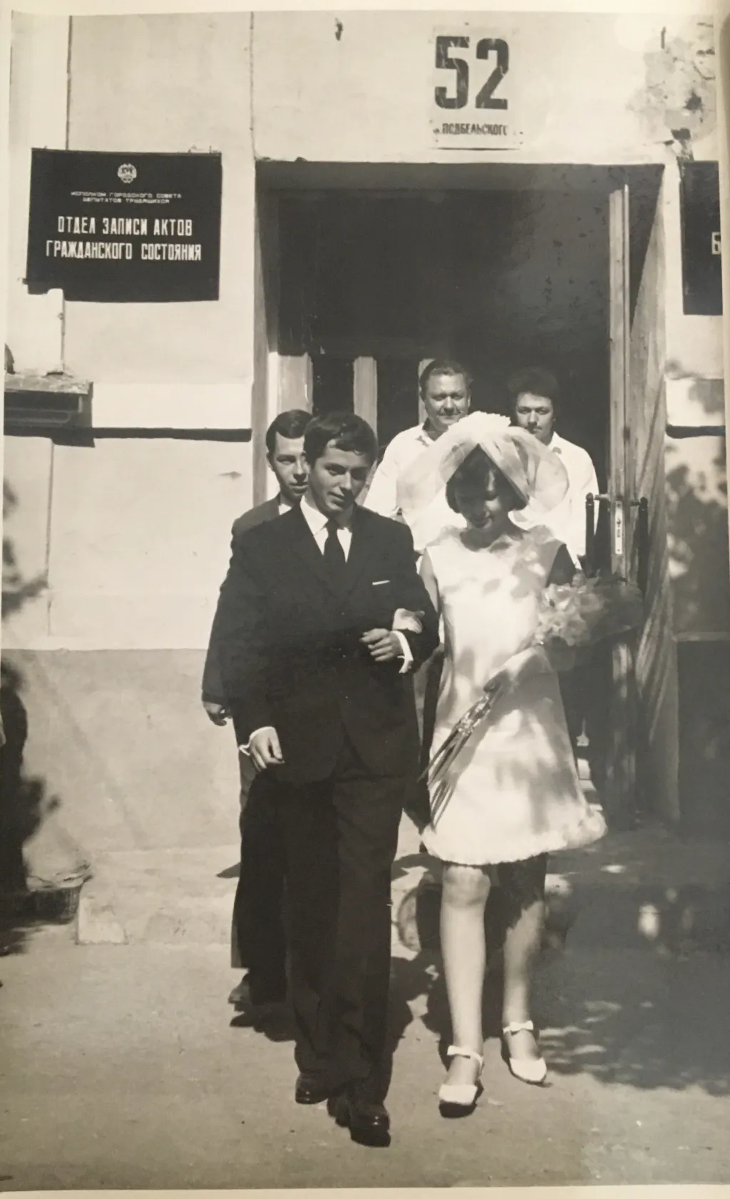 1969 г. август. Из ЗАГСа домой. Ещё не было традиции возложения цветов.