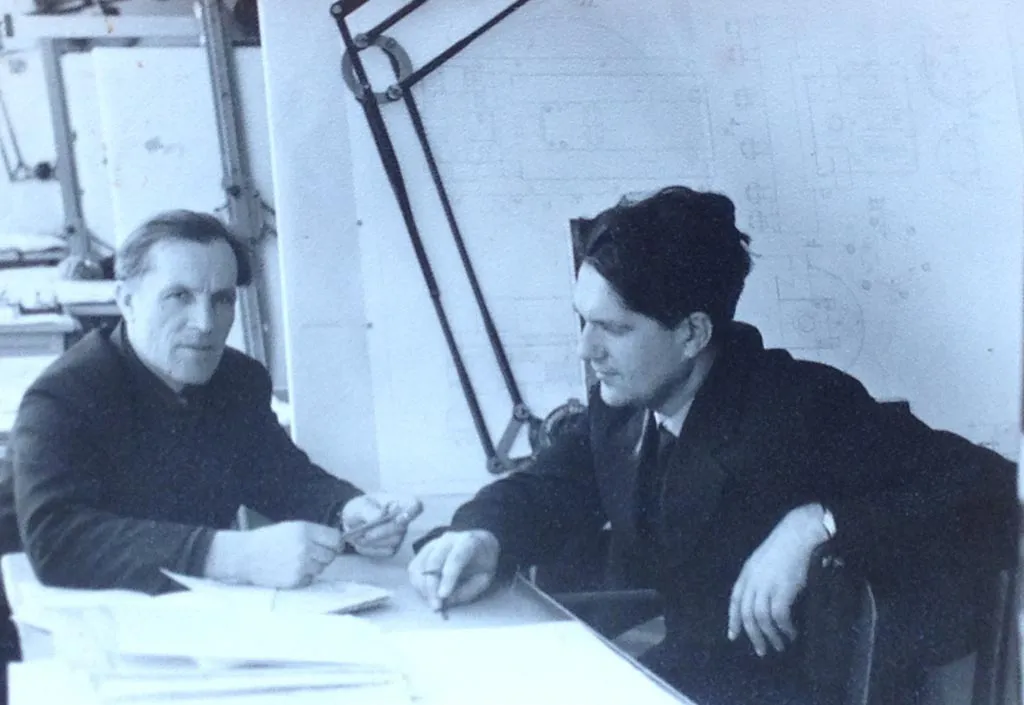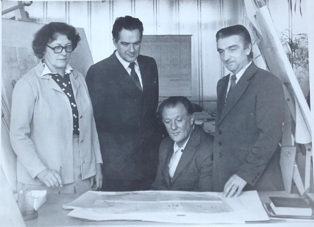Середина 60-х. Конструкторское бюро ОГТ завода ТКПО. Папа стоит в центре.
