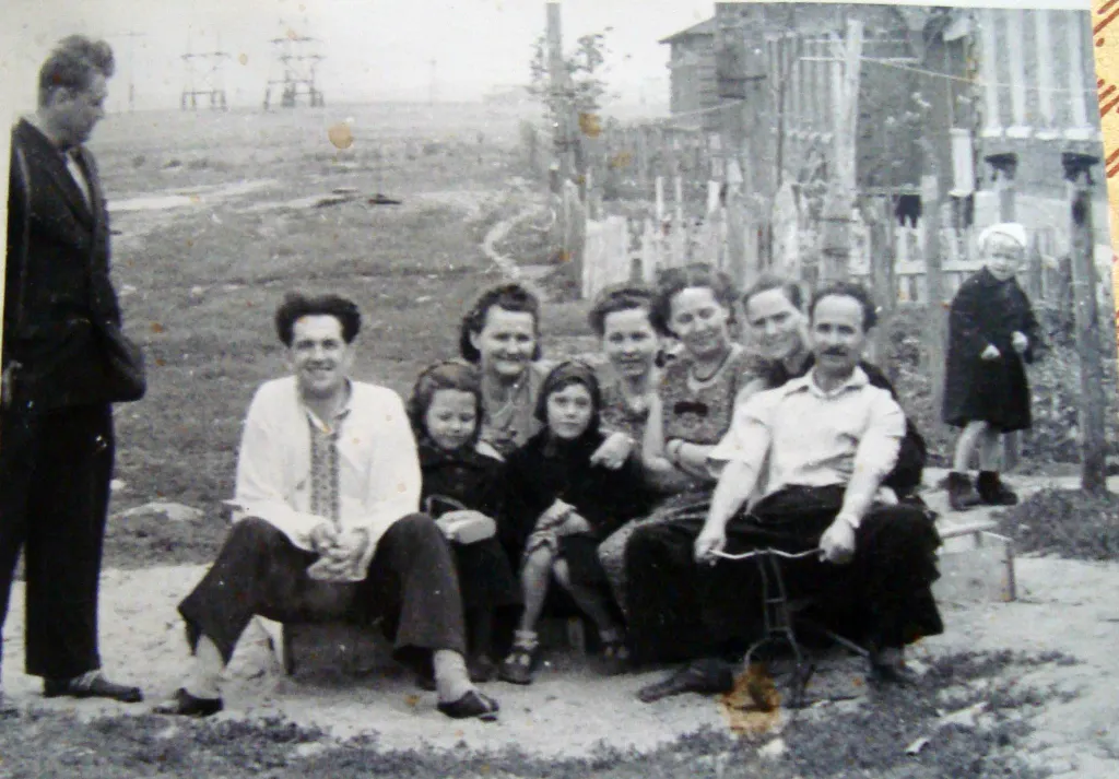 1957 г.. Мои родители в верхнем ряду. В парке.
